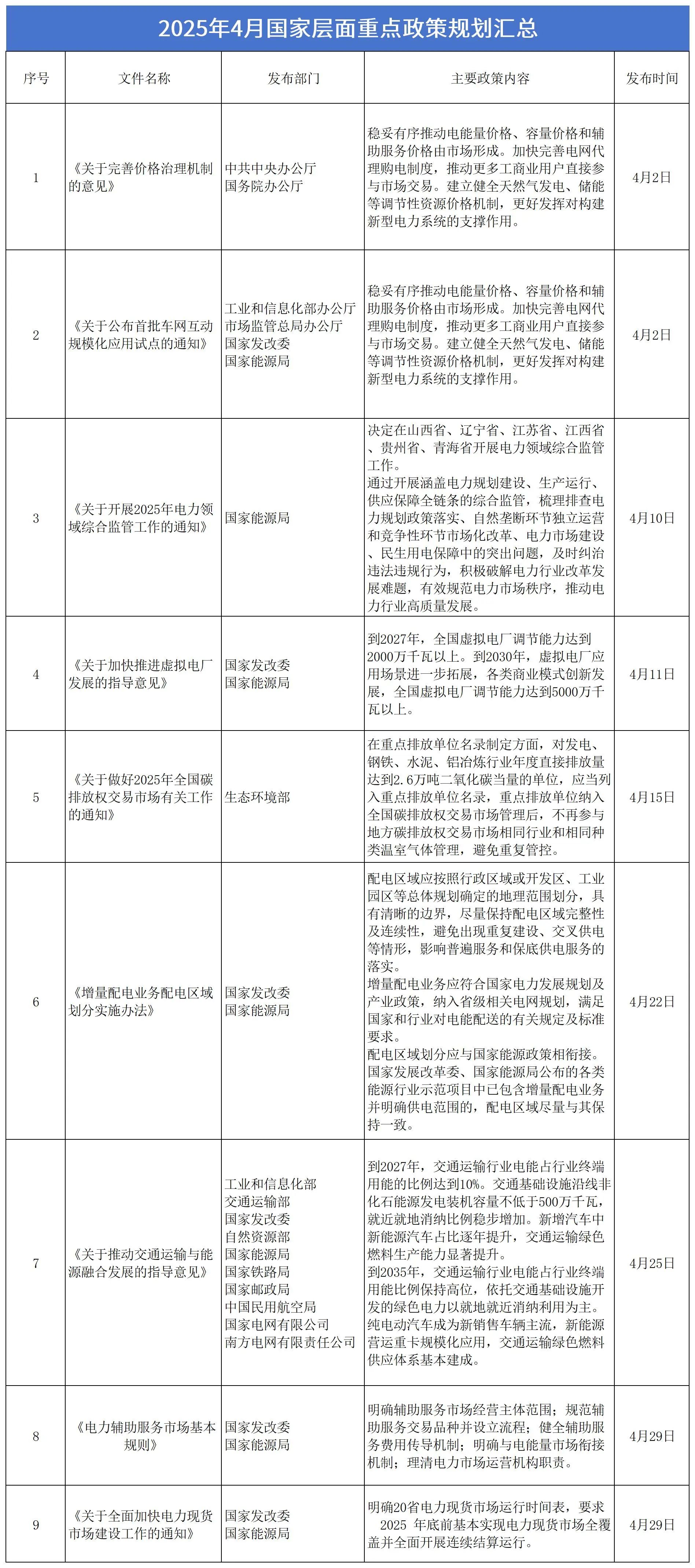 4月国家层面储能相关政策如下: