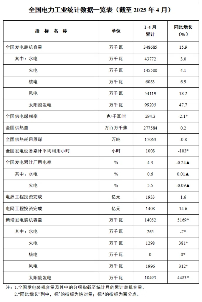 5月22日,国家能源局发布1-4月份全国电力工业统计数据。
